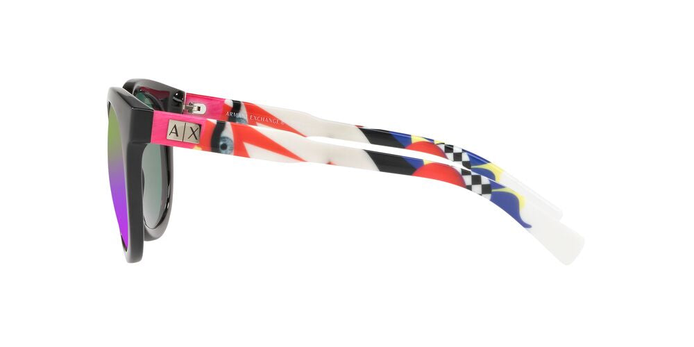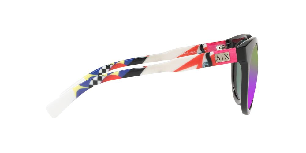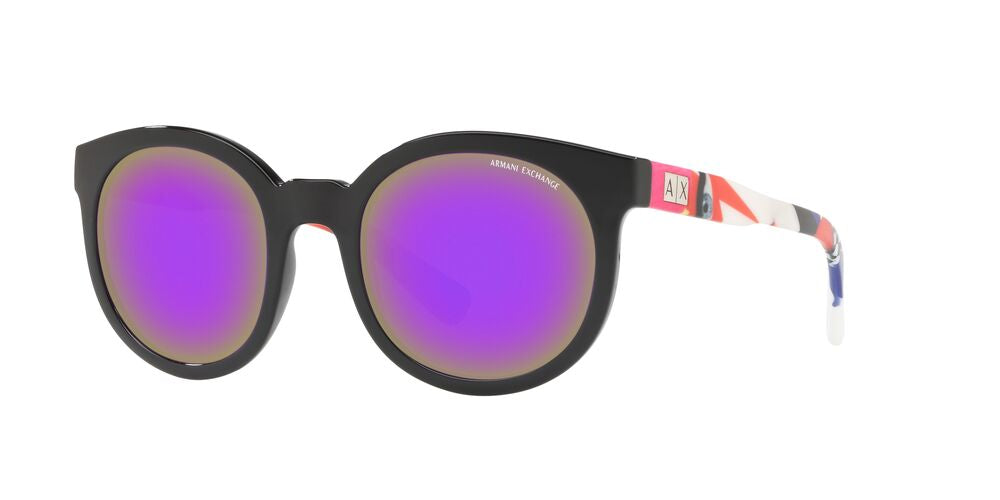 Los Lentes Solares Armani Exchange AX4057S para Mujer cuentan con un diseño completo irregular que les da un estilo muy atractivo, para que expreses tu personalidad. Fabricados en pasta color negro son super resistentes y cómodos, lo que te permite usarlos durante altas jornadas del día. Las lentes son de color Violeta, reduce el cansancio visual y da mayor contraste, un color de moda. Recomendado para rostros ovalados y forma de diamante. Haz tuyo este modelo y complementa tu look con Armani Exchange.