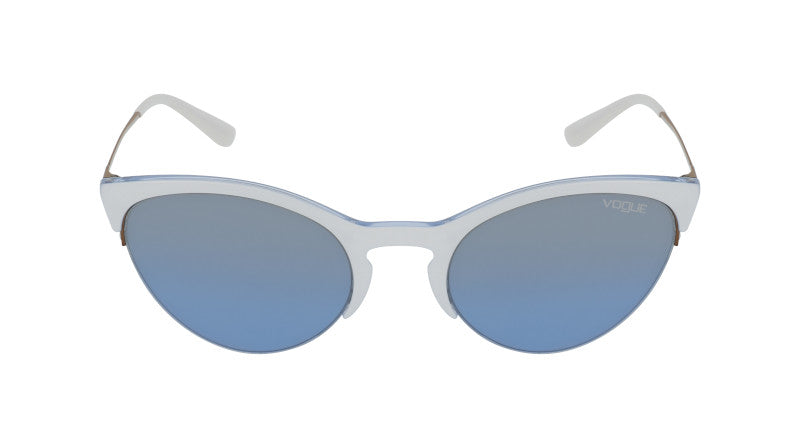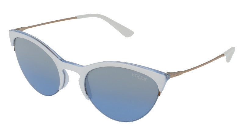 Los Lentes Solares Vogue Eyewear VO5287S para Mujer cuentan con un diseño medio aro gato que les da un estilo muy atractivo, para que expreses tu personalidad. Fabricados en pasta color azul son super resistentes y cómodos, lo que te permite usarlos durante altas jornadas del día. Las lentes son de color Azul, reduce el cansancio visual y resalta los colores, un color de moda. Recomendado para rostros forma de diamante y redondos. Haz tuyo este modelo y complementa tu look con Vogue Eyewear.
