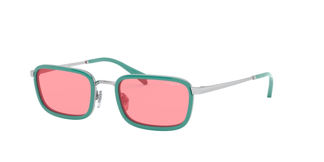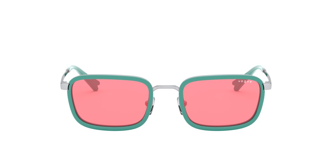 Los Lentes Solares Vogue Eyewear VO4166S para Mujer cuentan con un diseño completo rectangular que les da un estilo muy atractivo, para que expreses tu personalidad. Fabricados en metal color verde son super resistentes y cómodos, lo que te permite usarlos durante altas jornadas del día. Las lentes son de color Rosa, reduce el cansancio visual y resalta los colores, un color de moda. Recomendado para rostros redondos y ovalados. Haz tuyo este modelo y complementa tu look con Vogue Eyewear.